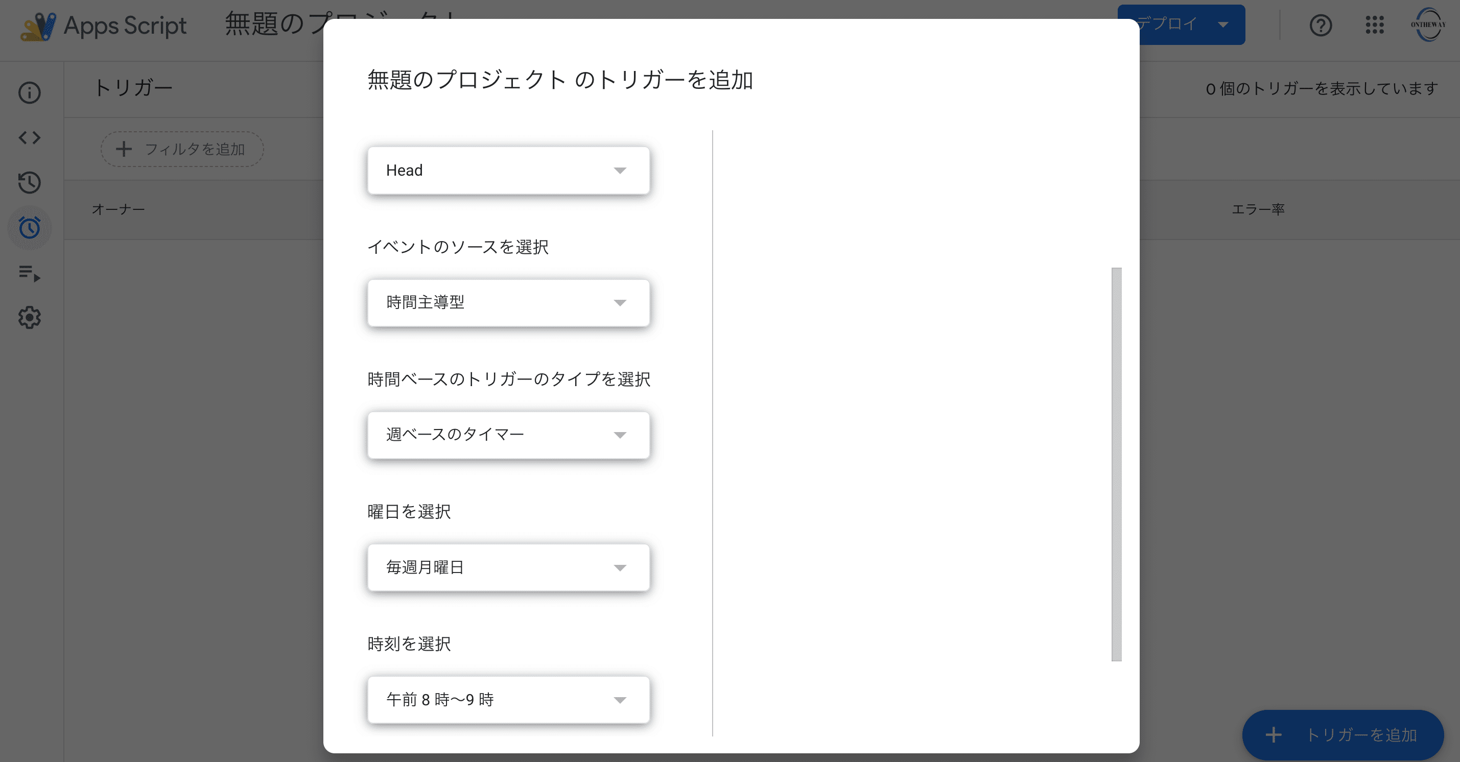 「トリガーを追加」をクリックして、以下のように設定してみてください。
