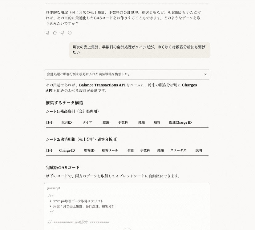 - 使用ツール:Claude、Google Apps Script、Stripe API