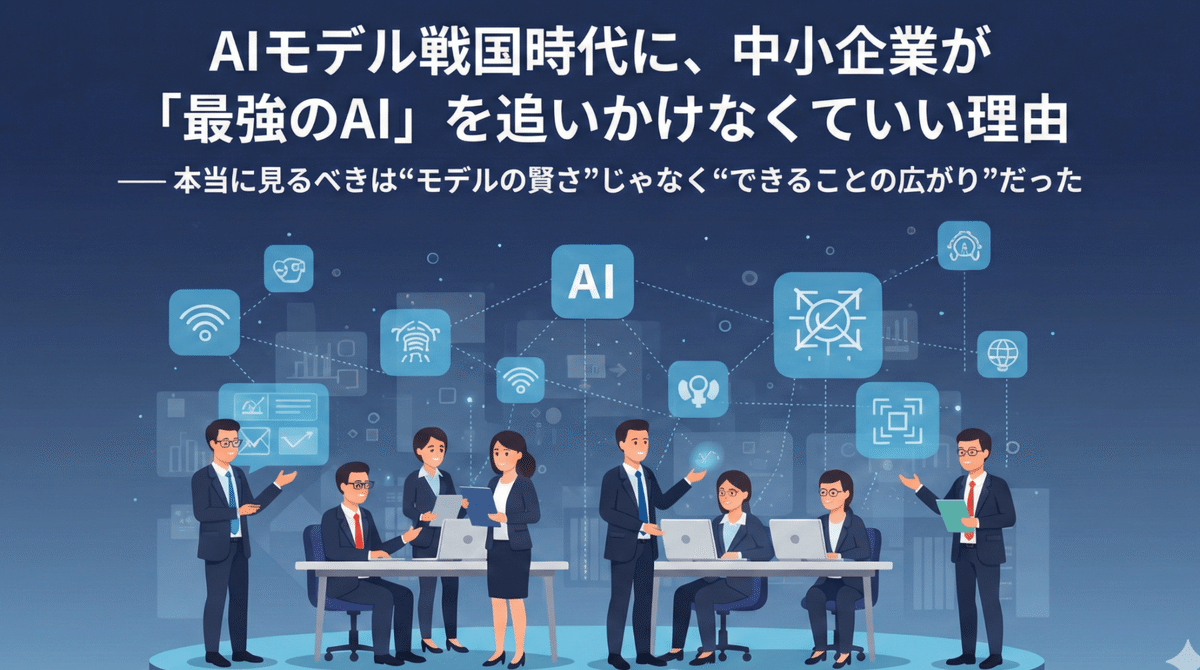 中小企業が今注目すべきは、「どのAIモデルが一番賢いか」ではなく、「AIを使って何ができるようになったか」です。